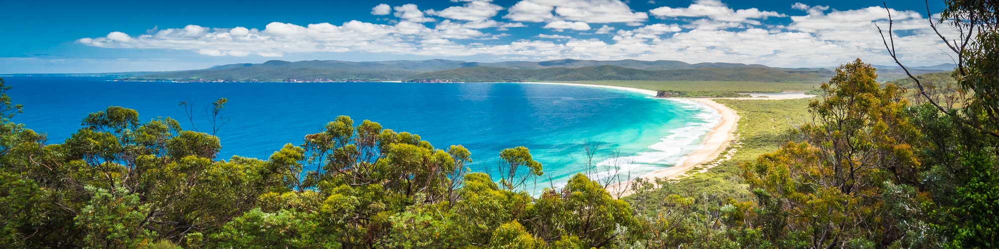 Ben Boyd National Park is a dramatic coastal park on the far south coast of New South Wales with rugged headlands, hidden beaches and native bushland that stretch between Merimbula and Eden. The dramatic coastal landscape offers expansive ocean views, steep cliffs and scenic lookouts that capture the wild character of this region’s shoreline.