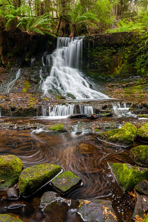 For those looking to wander a little further, the Horseshoe Falls are a lesser-known gem. A short walk from the main trail, these falls offer a quieter, more intimate experience, with water tumbling into a secluded gorge surrounded by dense forest. Both waterfalls are easily accessible and perfect for capturing the lush beauty of Tasmania’s wilderness.