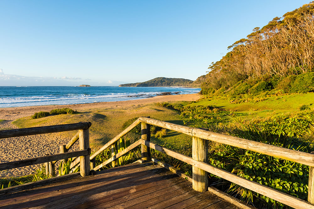 The pebble beach viewing platform and steps take you down toward scenic outcrops and shorelines that reveal tidal rock pools, sea birds and expansive ocean vistas. There are multiple beaches within the park, including north and south of Pebbly Beach, and beachside campgrounds that invite extended stays under the stars.