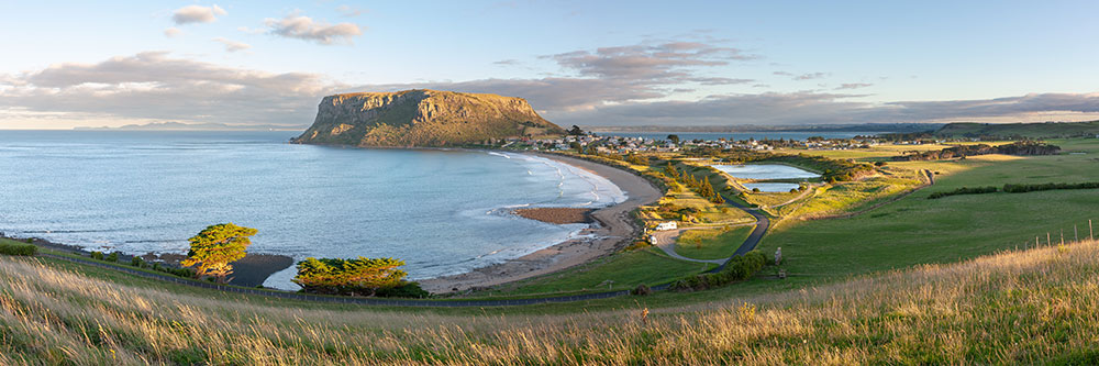 Stanley is a charming coastal town on Tasmania’s northwest coast, best known for its striking landmark — The Nut. This massive volcanic plug rises sharply from the sea, dominating the skyline and giving the town its unique character. You can walk or take the chairlift to the top, where panoramic views stretch across the Bass Strait and the rolling farmland below.