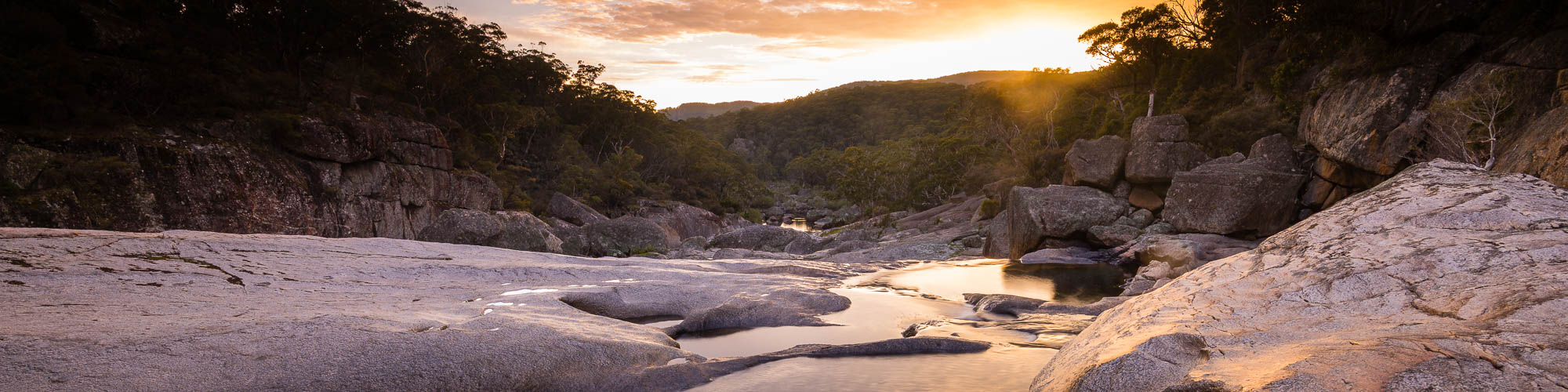 Wadbilliga National Park is an extensive wilderness area in south-eastern New South Wales, known for its rugged gorges, ancient plateaux and deep river valleys carved by the Tuross River and its tributaries. The landscape features dramatic granite rock formations, steep cliffs and lush vegetation in a setting that feels remote and largely untouched by development.