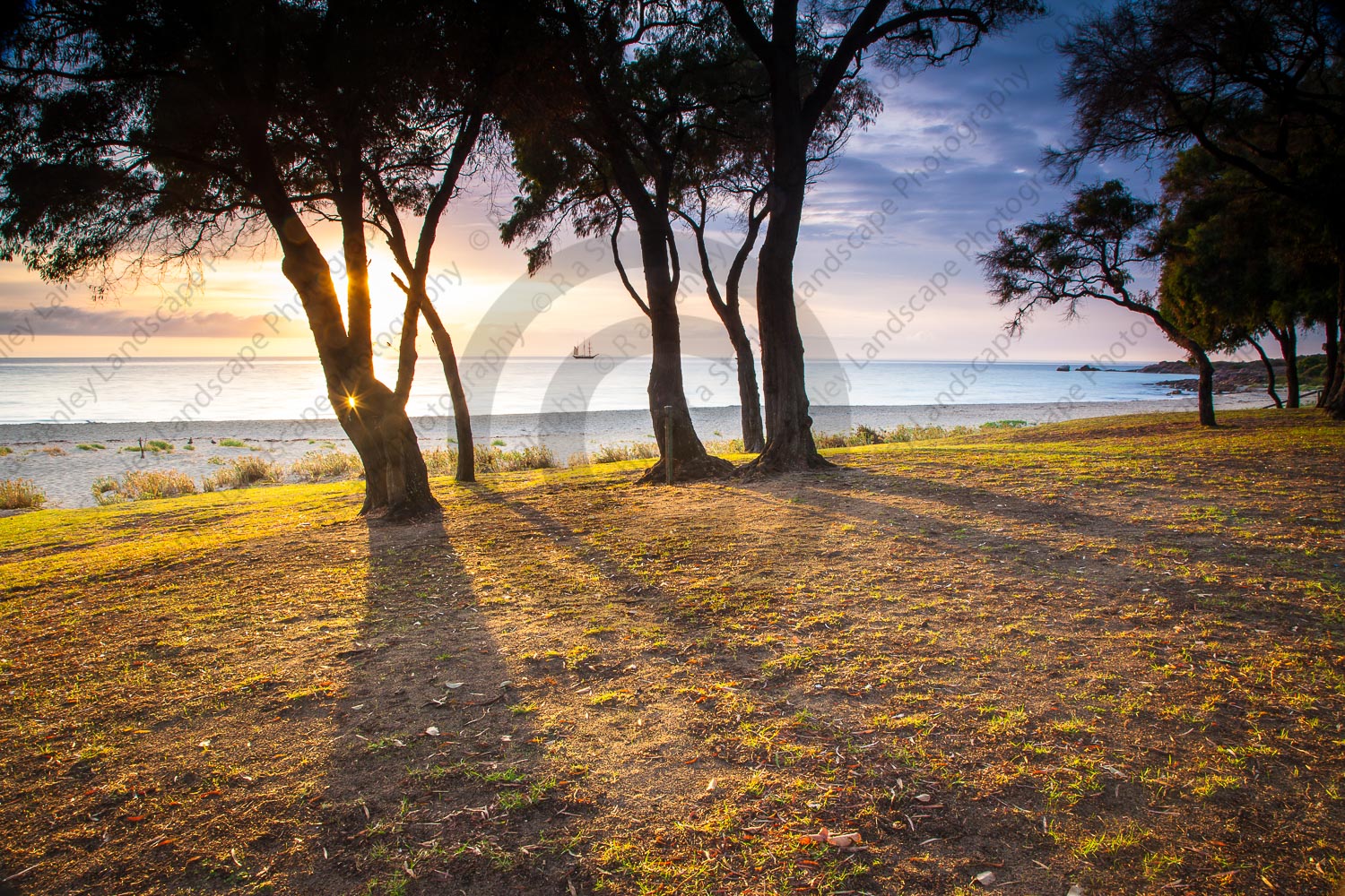 Trees and shadows, Meelup Beach. Margaret River, South West, Western Australia, Australia
