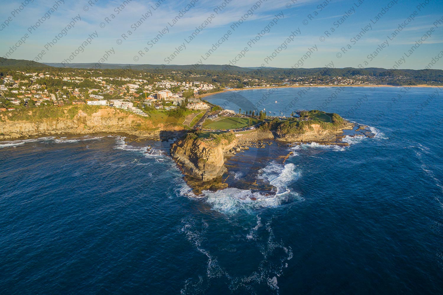 Aerial view of The Skillion and Terrigal Haven. Terrigal, Central Coast, New South Wales, Australia