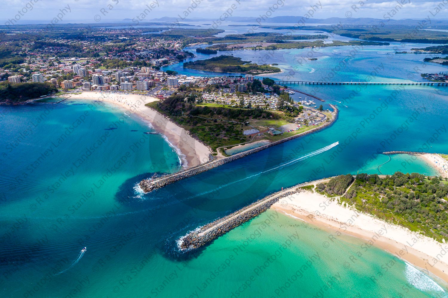 Forster Breakwall and Coolongolook River. Forster Tuncurry, Mid North Coast, New South Wales, Australia