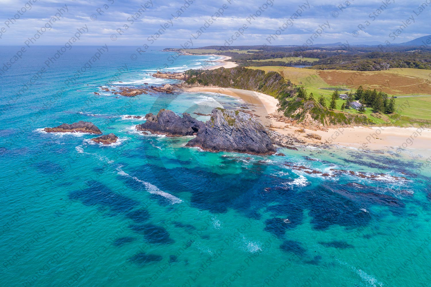 Glass House Rocks and Narooma Beach. Narooma, South East, New South Wales, Australia