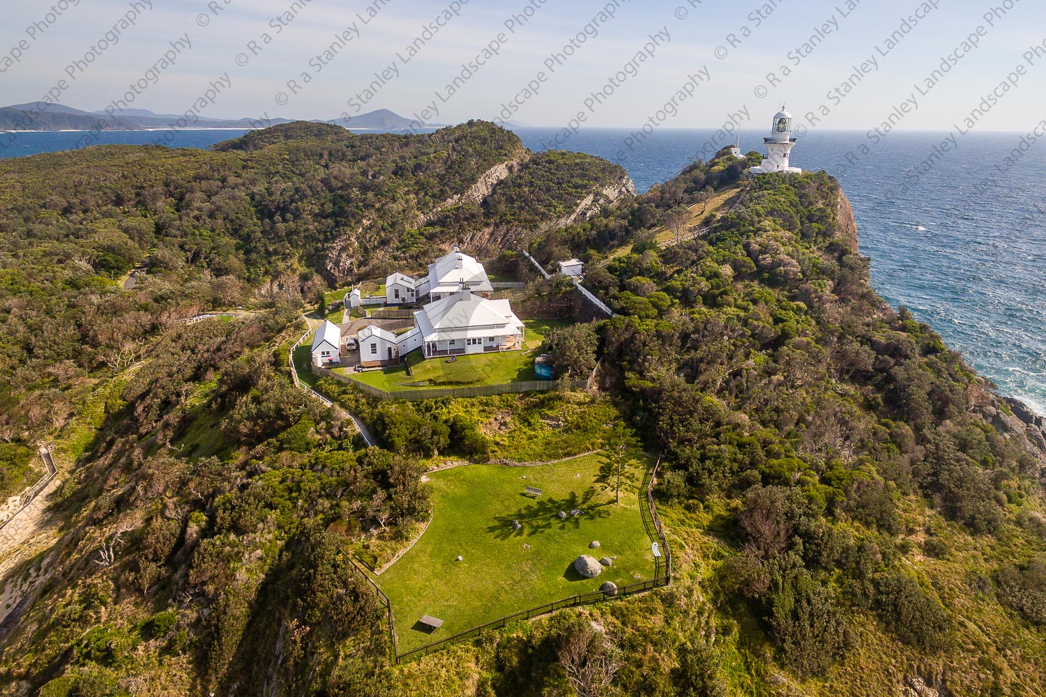 All of my aerial photographs of Seal Rocks Lighouse Cottages (69190) are taken from either a light aircraft, balloon, helicopter or drone. Photographing aerial images has to be one of the more thrilling parts of my job. Shooting aerial photos, allows me to create a whole new perspective on the landscape.