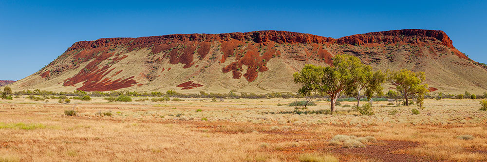 Bluff rising above outback landscape. Millstream Chichester National Park, Pilbara, Western Australia, Australia