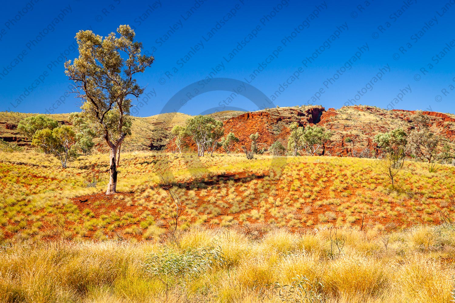 Spinefex grasses thrive in the arid outback of the Pilbara. Pilbara Outback, Pilbara, Western Australia, Australia