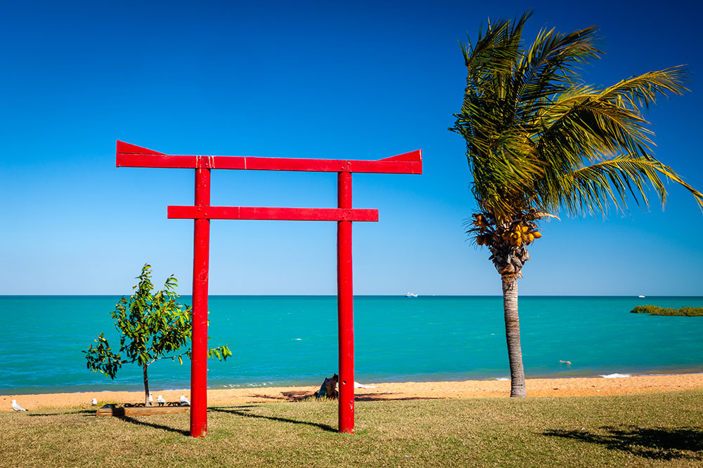 Torri Gate and palms on Town Beach. Broome, Kimberley, Western Australia, Australia