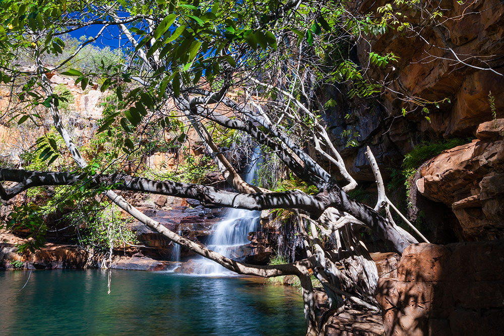 Waterfalls and plung pool at Galvans Gorge. Galvans Gorge, Kimberley, Western Australia, Australia. The Gibb River Road.