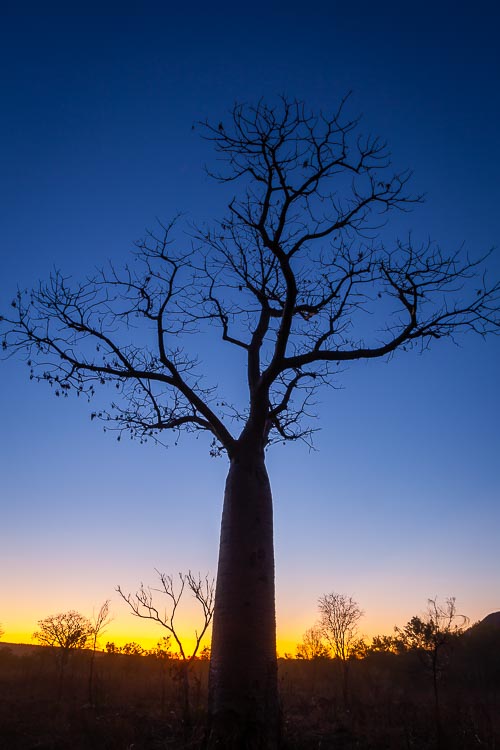 Lone Boab tree at twilight. El Questro, Kimberley, Western Australia, Australia. The Gibb River Road.