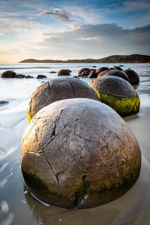 Giant spherical boulders on Moeraki Beach. Moeraki Boulders, Otago, South Island, New Zealand