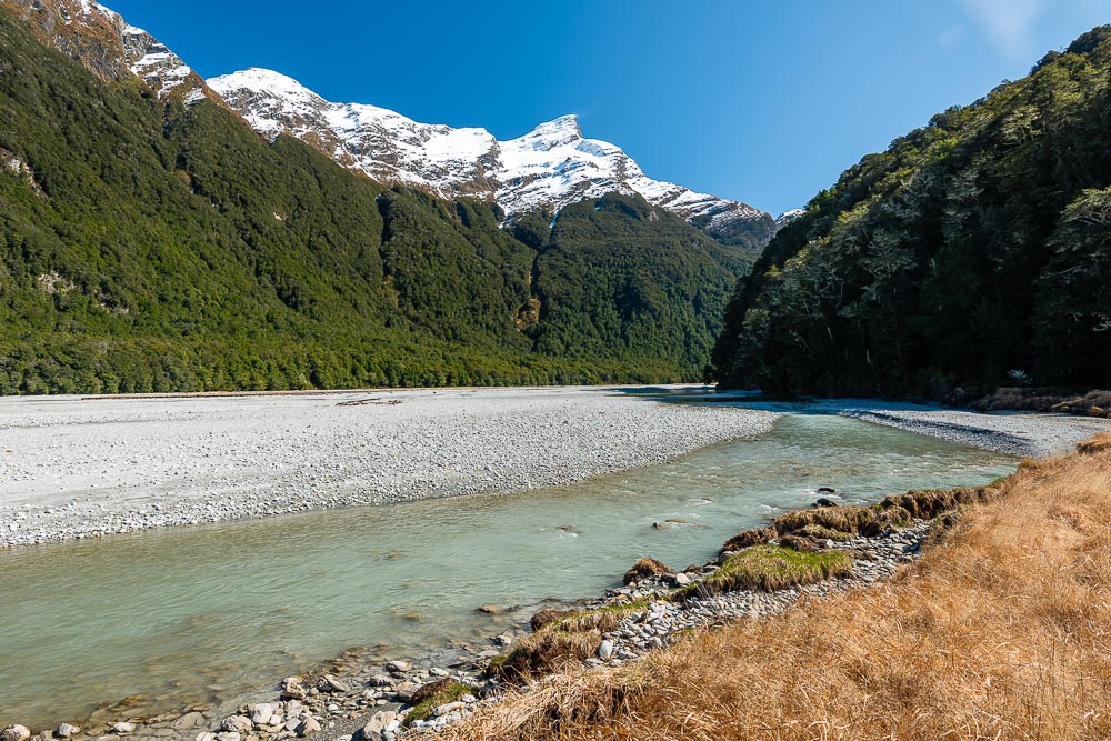 The Rees River and Mount Alfred in Paradise. Glenorchy, Otago, South Island, New Zealand
