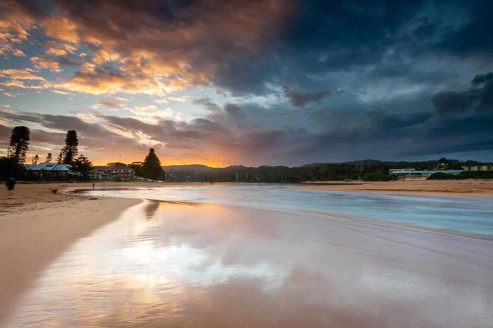 Sun setting over Avoca Lake, Avoca Lagoon. Avoca Beach, Central Coast, New South Wales, Australia