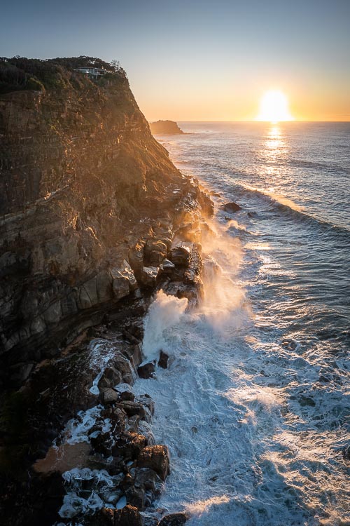 Waves crashing against cliffs at North Avoca Beach, Central Coast, New South Wales, Australia