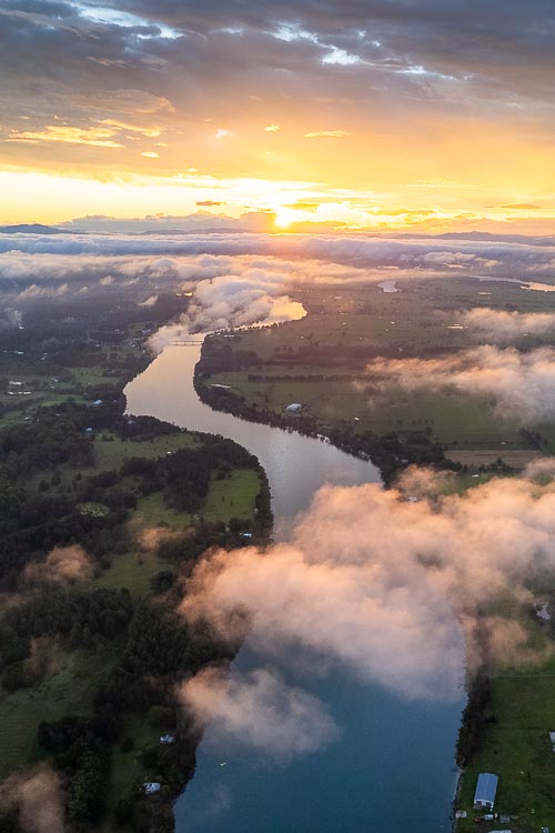 All of my aerial photographs of Sunset Over Manning River South Channel (72154) are taken from either a light aircraft, balloon, helicopter or drone. Photographing aerial images has to be one of the more thrilling parts of my job. Shooting aerial photos, allows me to create a whole new perspective on the landscape.